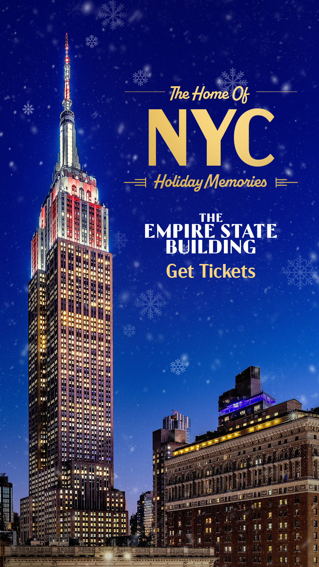 To drive ticket sales for this iconic New York City attraction we developed bespoke holiday creative that showcased the experience with playful copy appealing to multiple generations of visitors. The copy played a key role in setting the fun, engaging tone, with each line presented in a unique layout. We paired it with imagery highlighting the exciting activities beyond the observatory deck, bringing the full experience of the building to life. I led the art direction and oversaw the campaign rollout across out-of-home and digital channels.